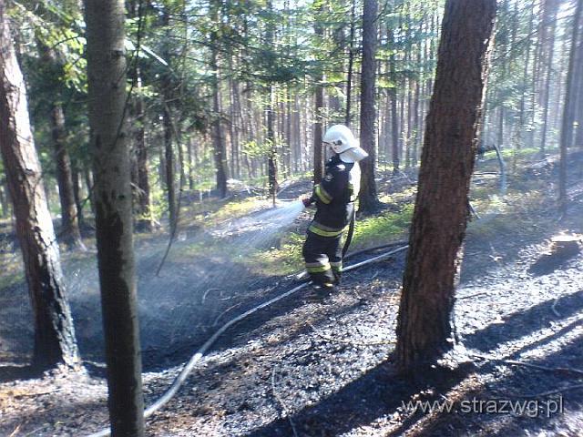 Po¿ar poszycia le¶nego.Ogieñ obj±³ oko³o 1 ha powierzchni. Do ugaszenia lasu zu¿yto 24 tysi±ce metrów sze¶ciennych wody. W interwencji wziê³o udzia³ 5 jednostek stra¿y po¿arnej w tym 26 stra¿aków z Wêgierskiej Górki, ¯abnicy, Ciêciny i ¯ywca. Spaleniu uleg³o 0,5 ha m³odnika jod³owego oraz 0,5 ha poszycia le¶nego